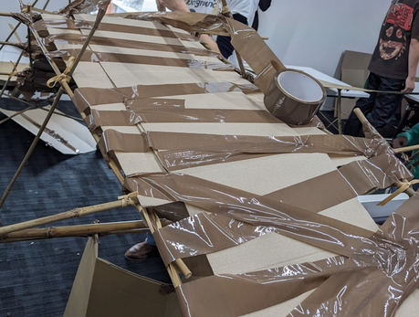 I forgot to put a tab on one of my side pieces so to connect it to the rest of the structure I created a strip that I scorred down the moddle and connected to both pieces. This was very effective at connecting the two parts.