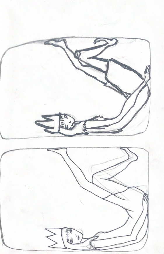 I am very happy with the pose and style of the drawing, however the stripes on the trousers, while they match the dress of the queen, look slightly out of place and could have been replaced with a block colour.