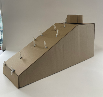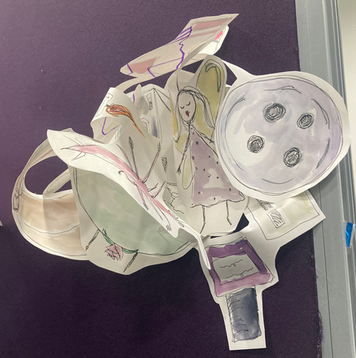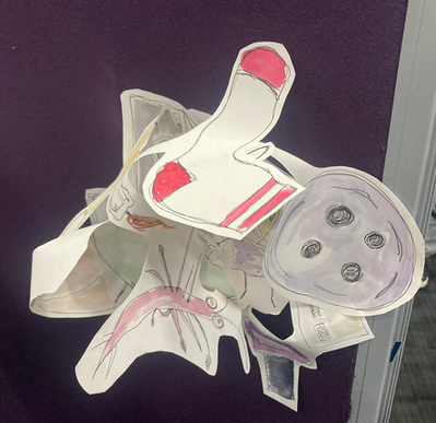 Overall, I am pleased with the outcome of this project asI scuccessfully recreated the pIece to a larger scale. To improve I would ensure that I drew one of the side pieces in reverse to the other so that the same colour cardboard was used on all sides. I would also make the citcle on the top smoother by adding some scoring to it as it was quite jagged.