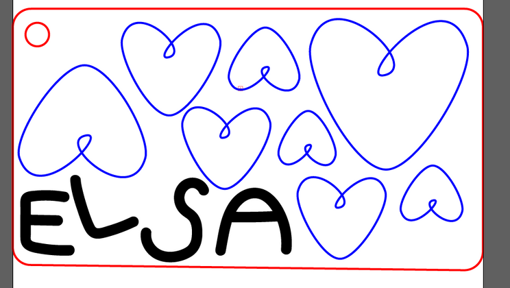 We were tsked with designing a keyring on Illustrator to then be engraved and cut out by a laser cutter. This required new skills for me on Illustrator like free drawing and learning about the exact required levels on colours in order for them to be recognised by the laser cutter. We had to colour code our design with blue, red and black according to what we wanted engraved, cut out and etched in. At first I made the mistake of selecting a random shade of red and blue instead of setting the levels to be pure blue and red, this would have led to the laser cutter not recognising them and not carring out my design.
