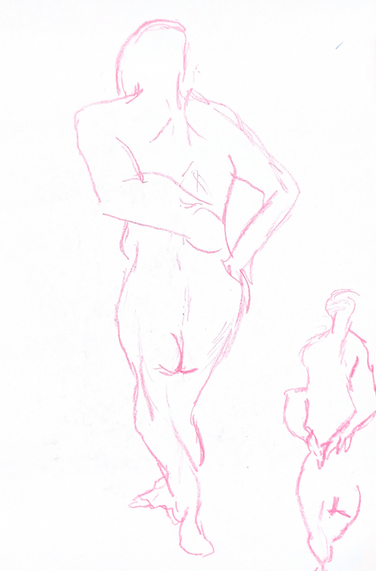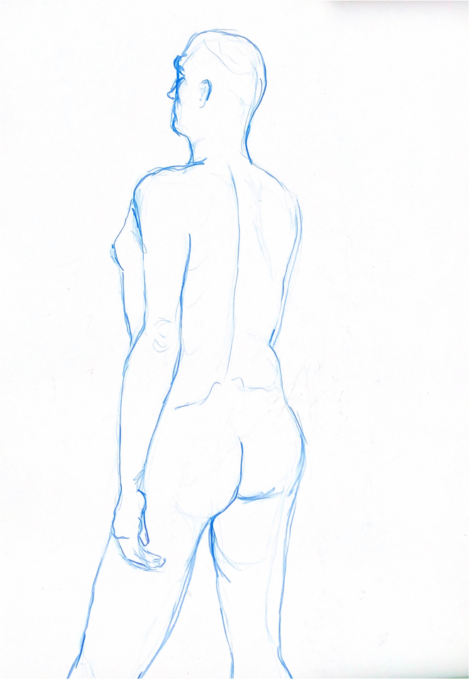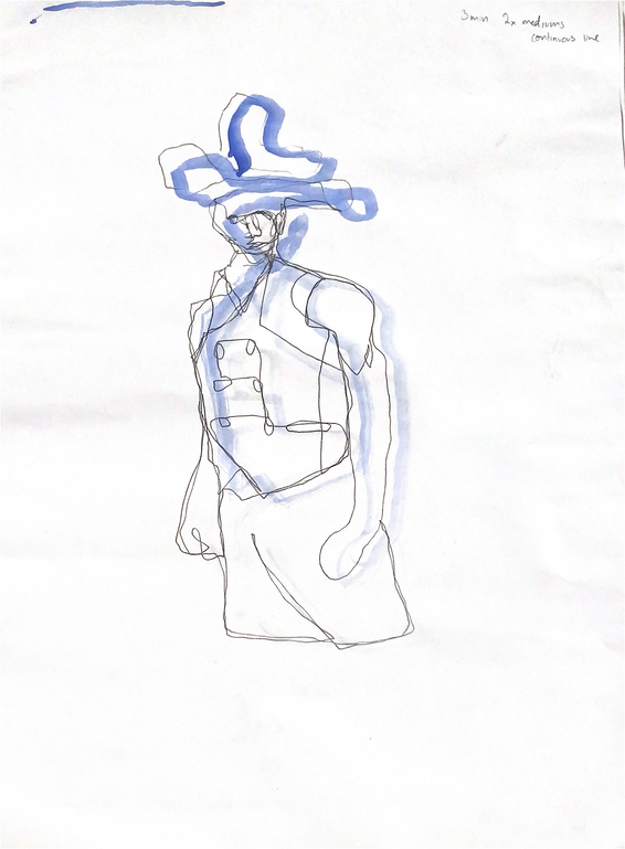 5 min not looking at the paper: this helped me to consistently check on my subject in the later drawings.