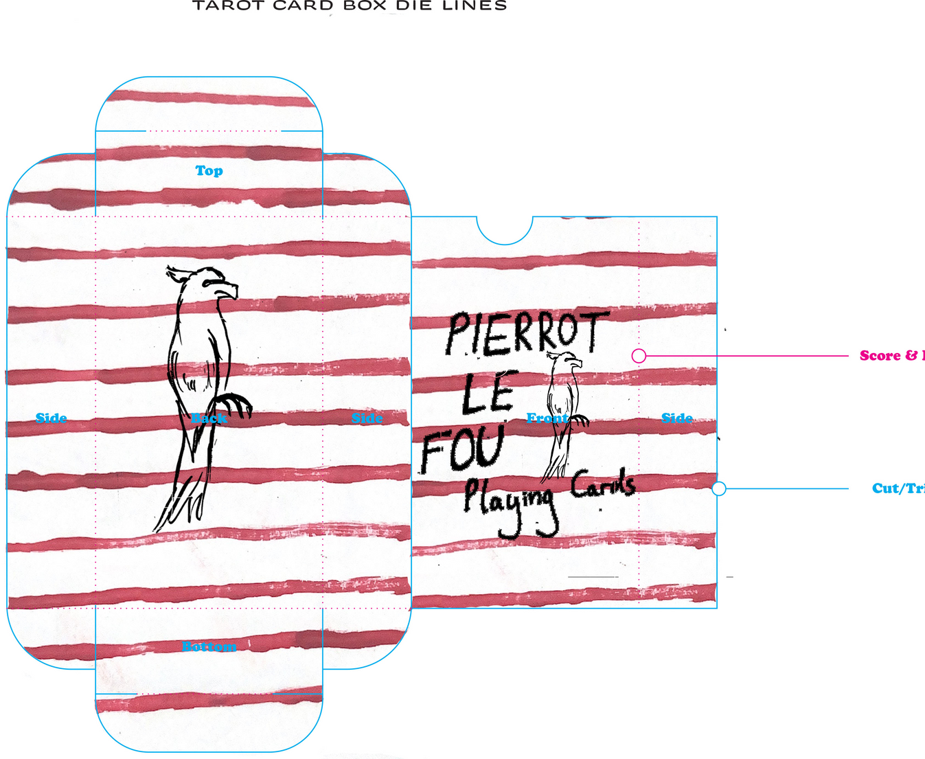 I wanted the box design to link to the deck but be very simplistic. I thought that the image of the parot was subtle and a overused image within the film but linked well to the rest of the cards.