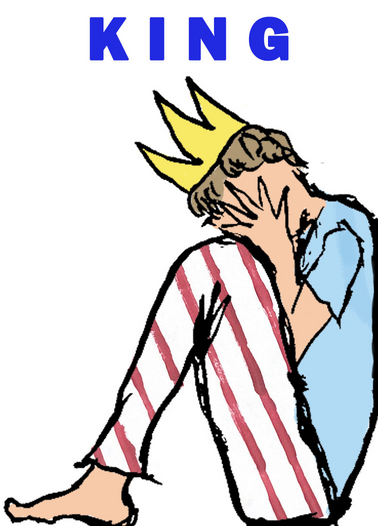 I wanted to slightly subvert the steryotypes associated with the king card to match the character in the movie. His character expectaions are subverted when he discovers he has been tricked all along and I thought it would be interesing to show his emotional turmoil on this card, contrasting the steryotypes of strength and power of a king.